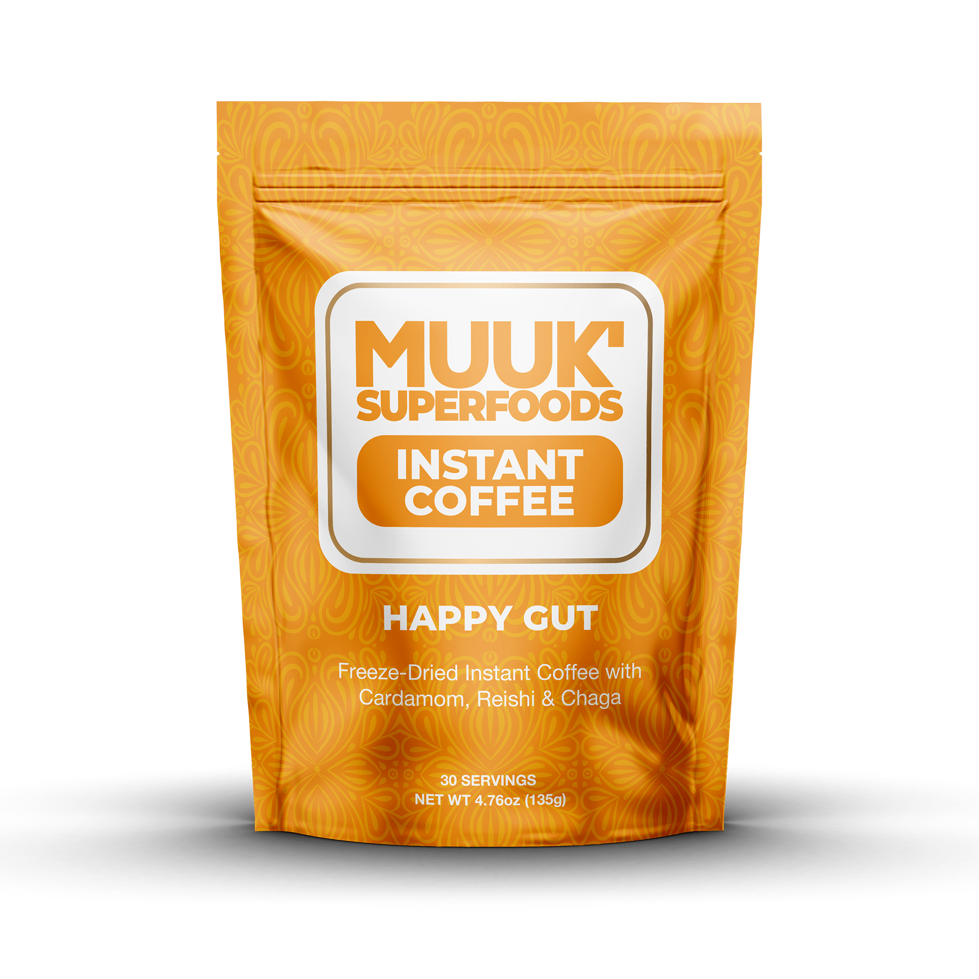 MUUK' HAPPY GUT | Instant Mushroom Coffee | 4.7oz (135g) 30 Servings